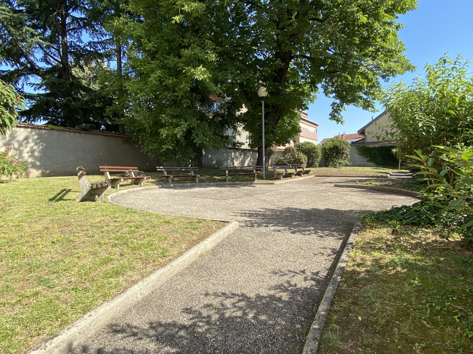 Copropriété avec gardienne. Accès à la cave et local vélo avec l'ascenseur. Jardin arboré avec bancs dans la copropriété à l'arrière de l'immeuble.