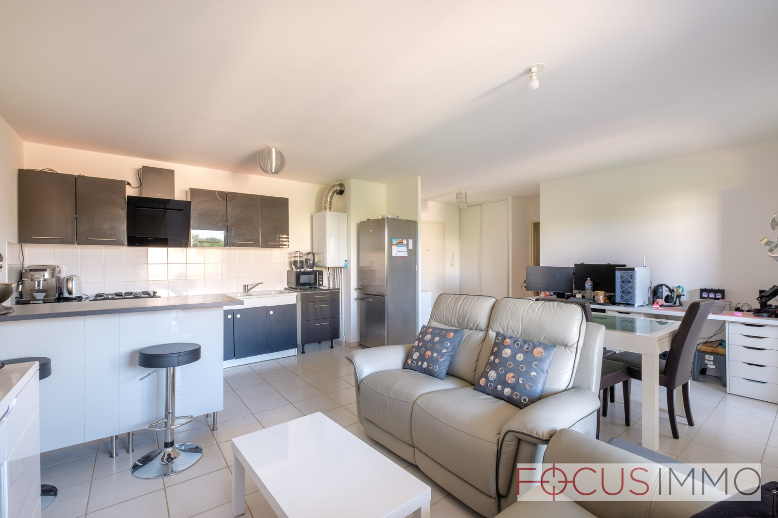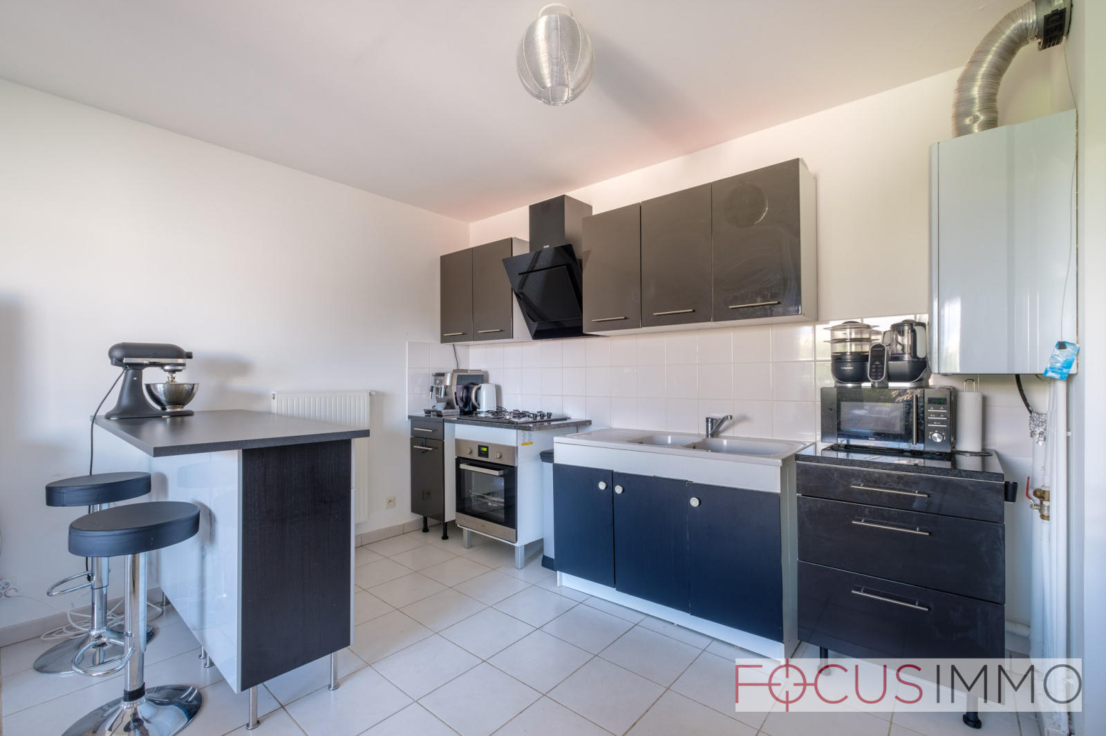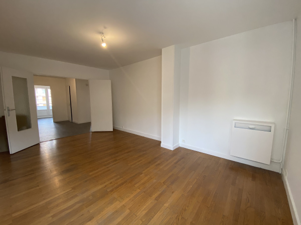 Appartement composé d'une grande pièce de vie de 33 m² avec cuisine ouverte, 2 chambres de 12, 5m² chacune, une salle de bain avec baignoire et sèche-serviettes et WC séparés.
