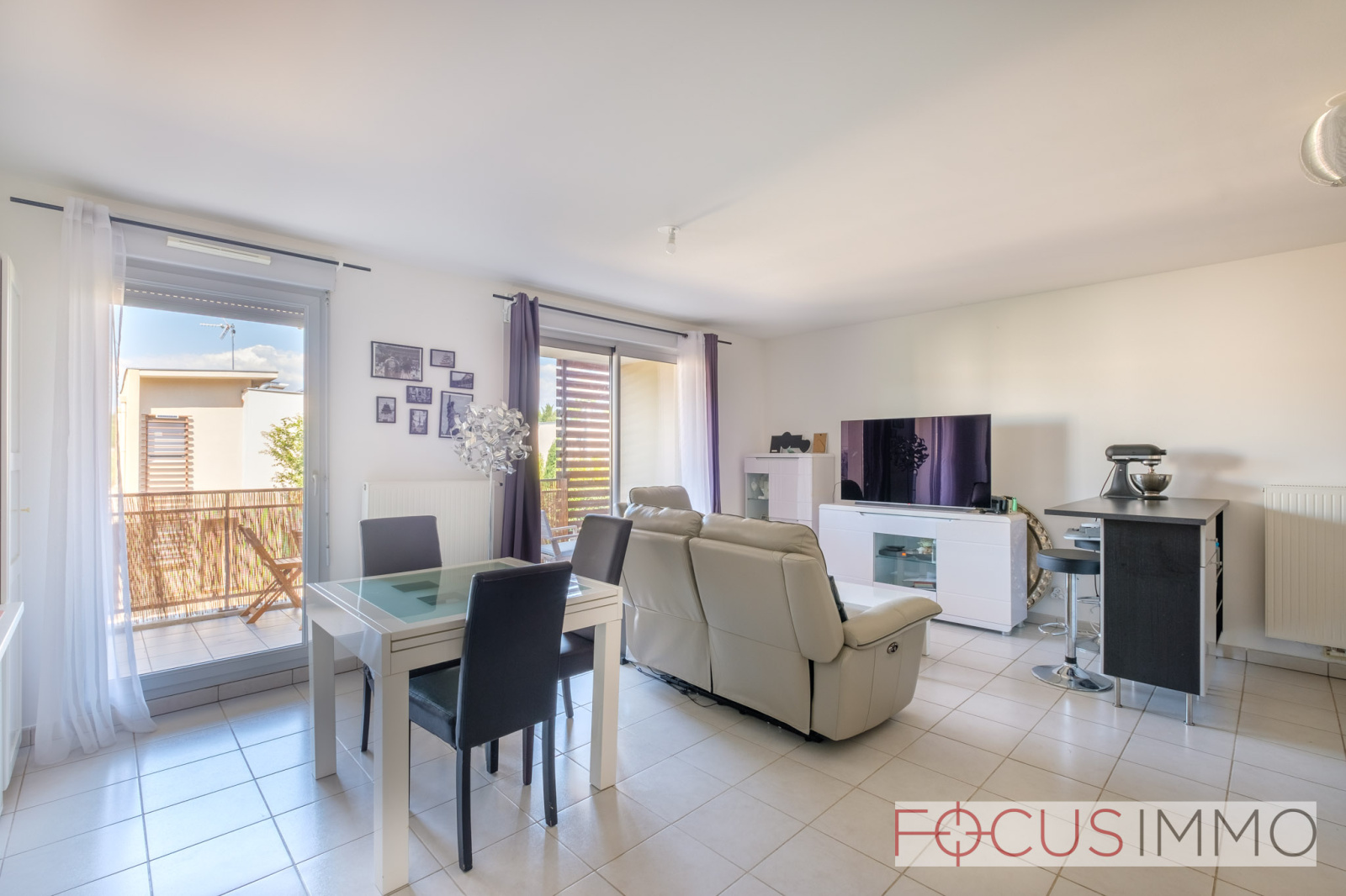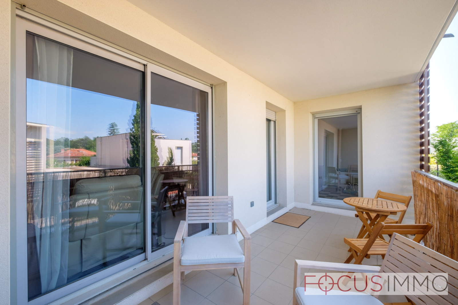 Une des deux chambres et la grande pièce de vie avec 2 portes fenêtres donnent accès à un grand balcon à vivre de 12m² qui permet de diner et d'organiser un coin salon extérieur dans cet environnement calme et bien fréquenté par des familles.